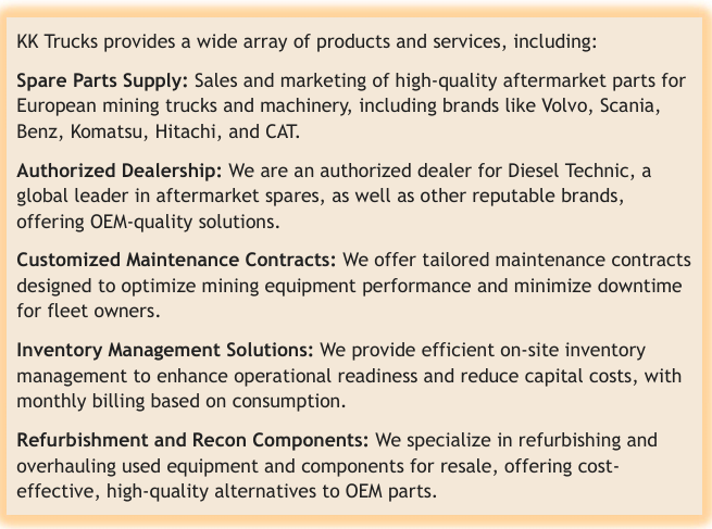 KK Trucks provided excellent spare parts and services for our mining operations.